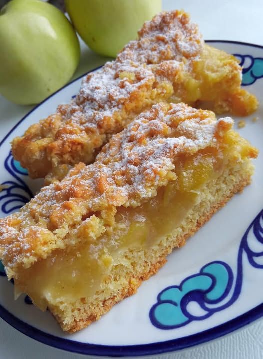 chrupiącym ciastem kruchym i dużej ilości musu jabłkowego