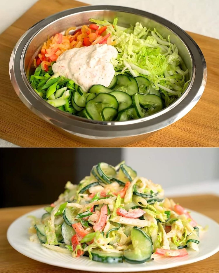 Tytuł: Sałatka z ogórków i kapusty pekińskiej z dressingiem jogurtowym